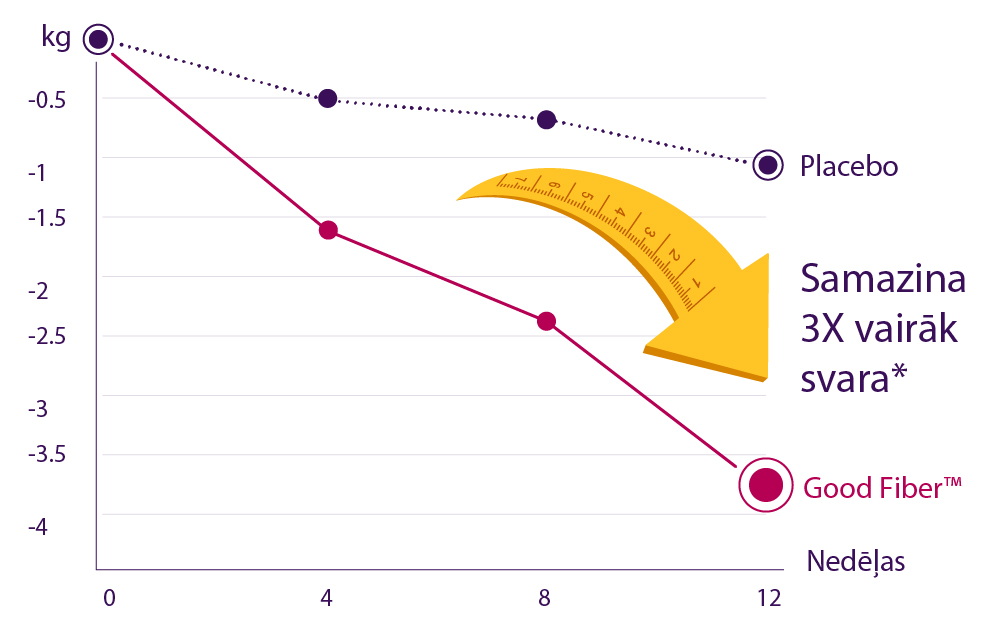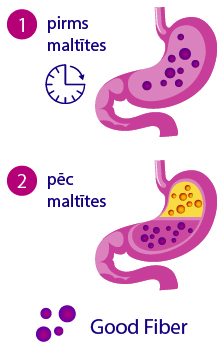 Good Fiber sastāvā esošās šķiedrvielas, nonākot organismā, izplešas aizņemot līdz pat pusei no kuņģa satura. Līdz ar to maltītes laikā līdz pat 2 reizēm ātrāk izstrādājas sāta sajūta un mazinās kāre pēc saldumiem un cita veida uzkodām.