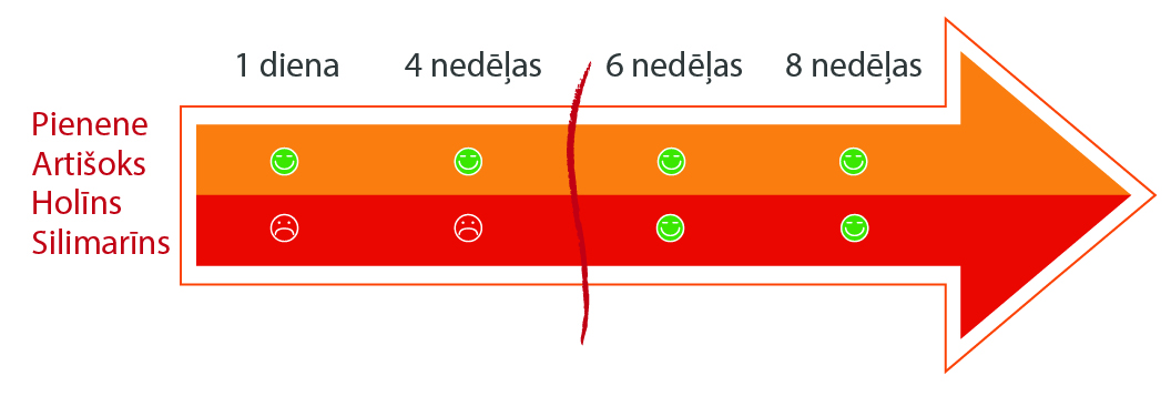 - Holīns un silimarīns – apvienoti vienā kapsulā.
