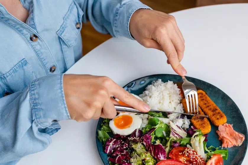Jāizvēlas mazākas porcijas, turklāt jāēd biežāk, lēnāk un rūpīgāk sakošļājot ēdienu. Tas palīdz samazināt kuņģa noslodzi un uzlabo gremošanu. Ēdienam vēlams būt siltam, nevis karstam vai aukstam.