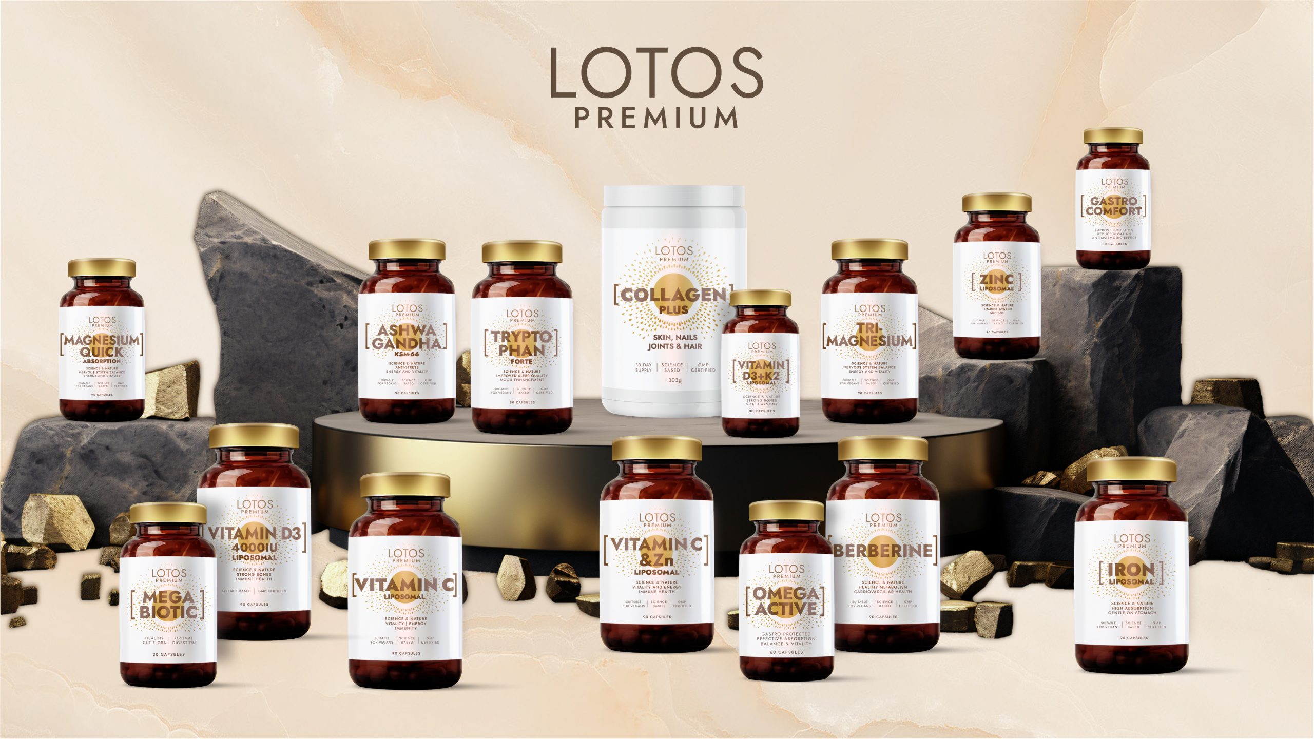 Introducing a new era of premium food supplements from Lotos Pharma. Our commitment to providing science-backed, high-quality products aligns with the growing demand for sustainable and ethical health solutions. Each of our supplements is meticulously crafted to meet the unique needs of vegans, ensuring that you receive the essential nutrients you deserve.