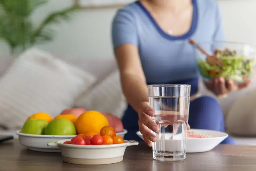 Pietiekams šķidruma daudzums palīdz novērst dehidratāciju un mazināt nelabumu. Ieteicams dzert ūdeni vai siltu tēju pa maziem malkiem. Šādā veidā var stabilizēt kuņģa darbību un uzlabot pašsajūtu.